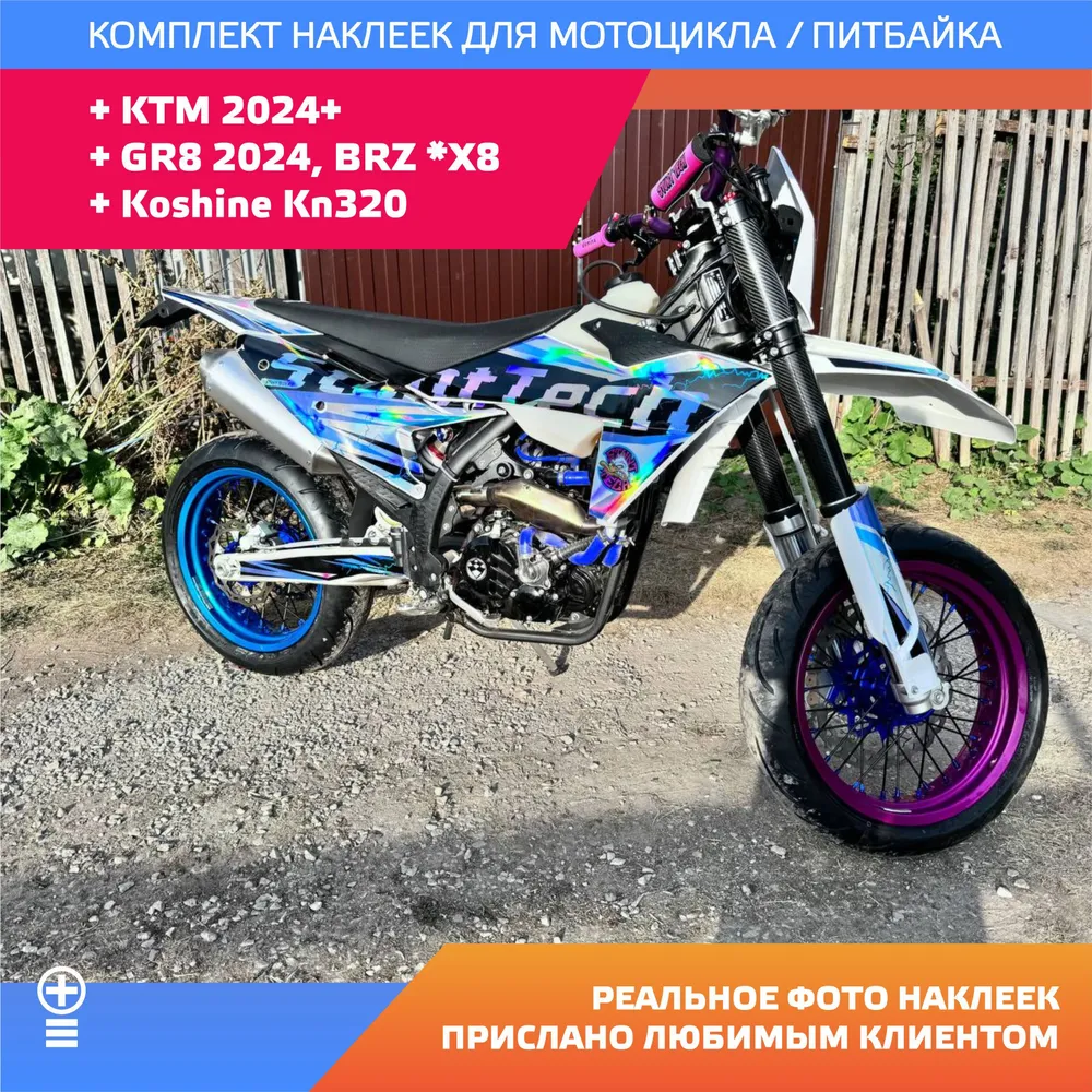 Для кроссачей и прочих любителей грязи мы не используем в стандартных материалах цветные и металлик плёнки. Только белый, только хардкор 🙂