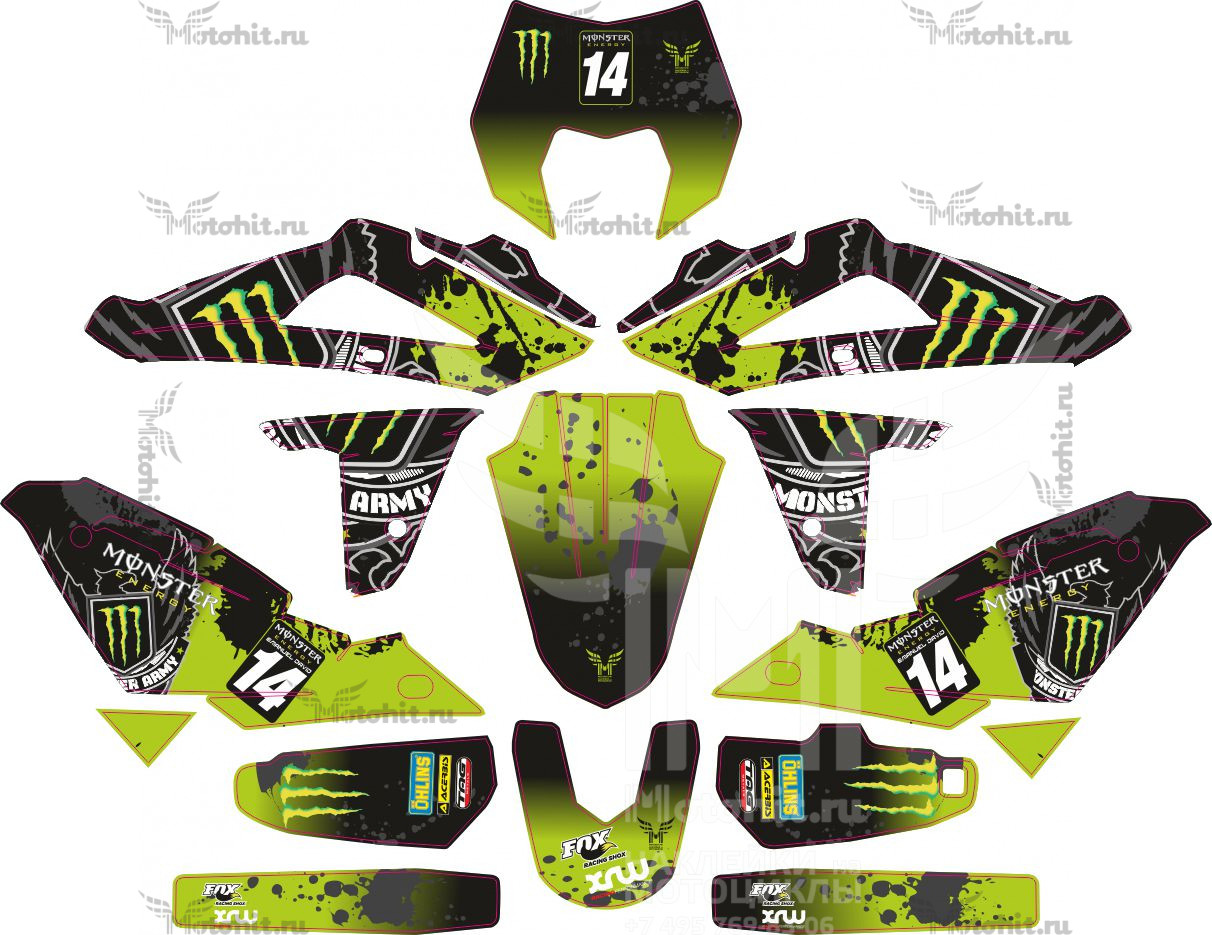 Комплект наклеек на мотоцикл HUSQVARNA TE-TC-450-511-2008-2010 — green-monster