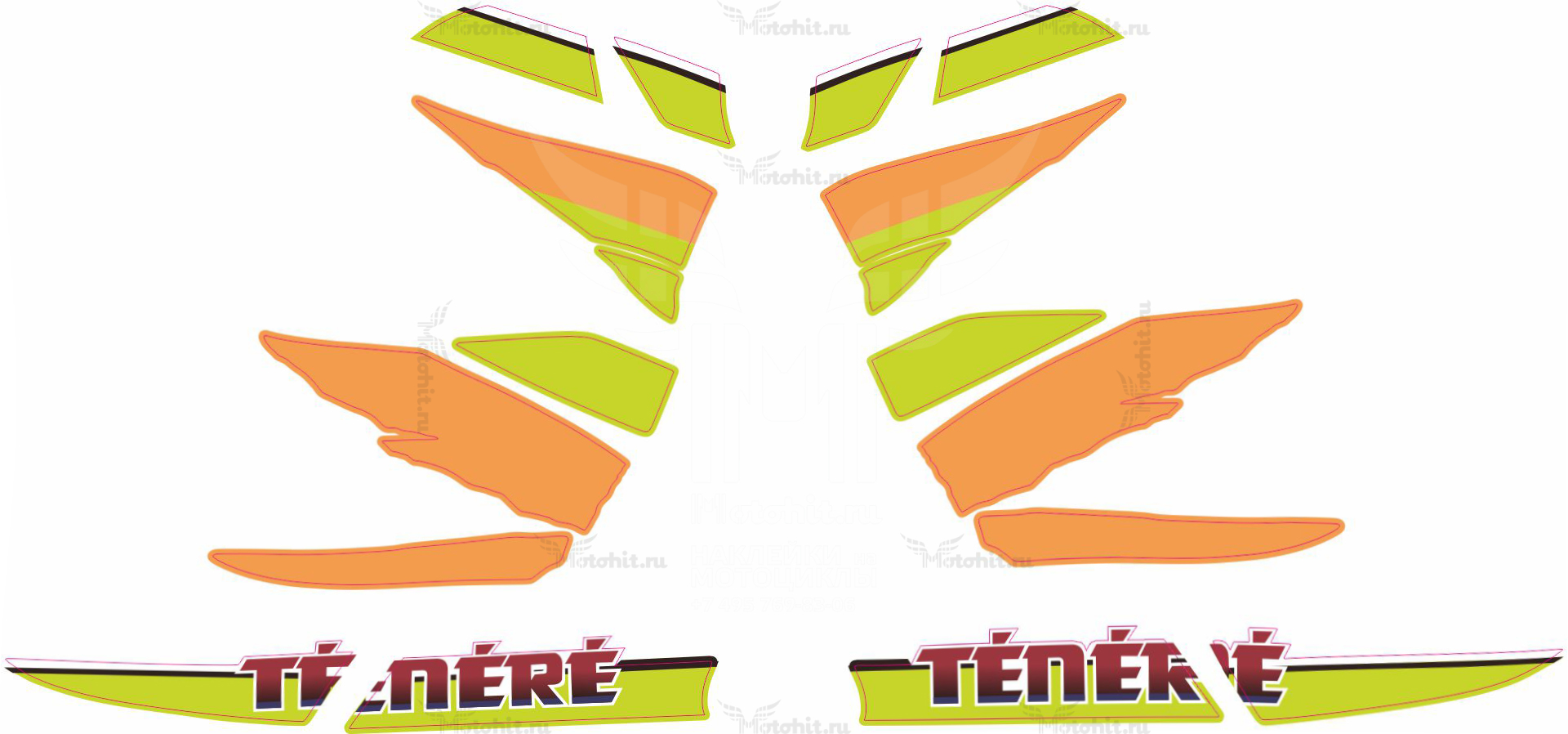 В основном мы делаем цвета максимально близкими к тому что на мотоцикле. Цвета на наклейках могут отличаться от цветов, которые Вы видите на экране, или от цвета наклеек у Вас на пластике.