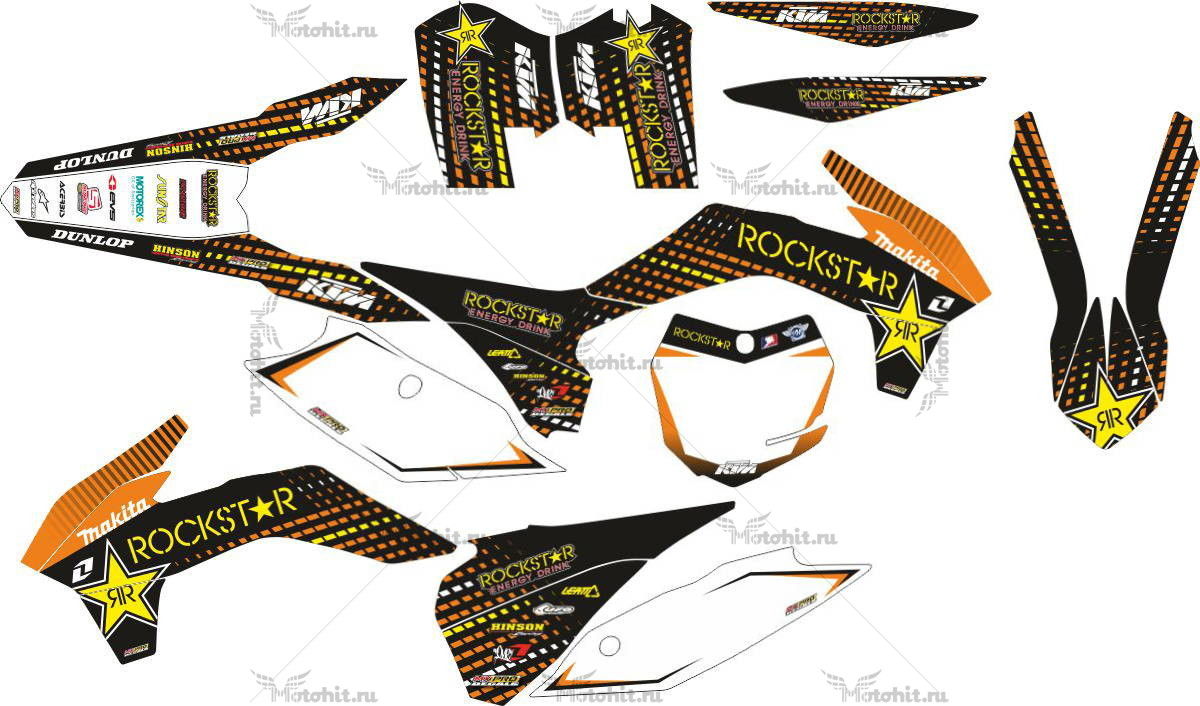 В основном мы делаем цвета максимально близкими к тому что на мотоцикле. Цвета на наклейках могут отличаться от цветов, которые Вы видите на экране, или от цвета наклеек у Вас на пластике.